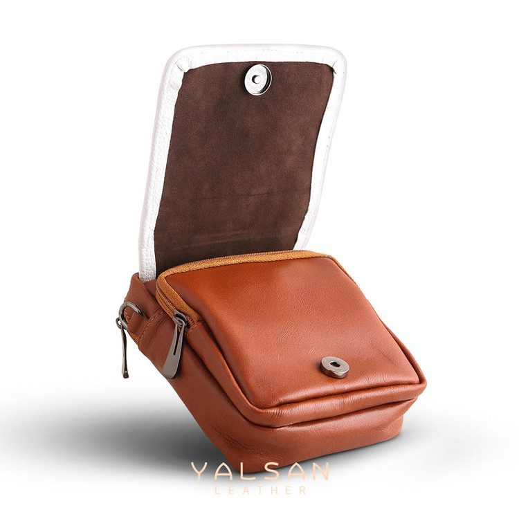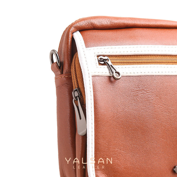 تماما چرم طبیعی گاوی قابلیت استفاده برای بانوان و آقایان ابعاد مناسب برای روزمره دارای جیب های کاربردی دارای دکمه مگنتی ایستایی فوق العاده بسیار سبک بند دوشی قابل تنظیم