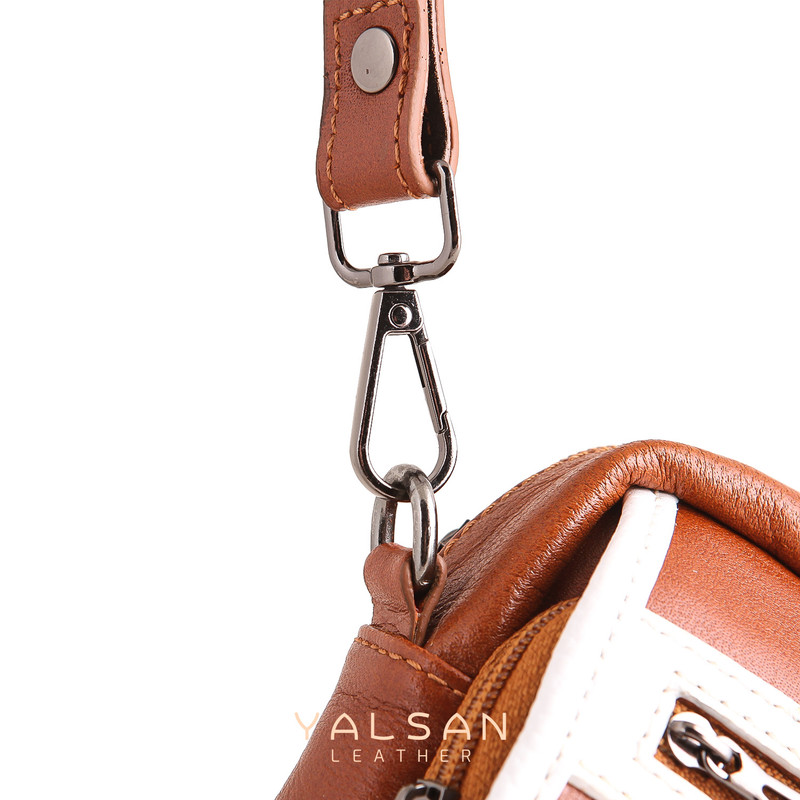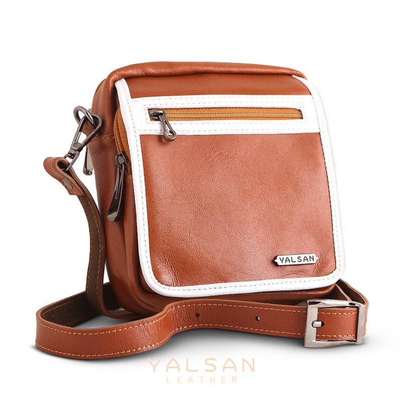 تماما چرم طبیعی گاوی قابلیت استفاده برای بانوان و آقایان ابعاد مناسب برای روزمره دارای جیب های کاربردی دارای دکمه مگنتی ایستایی فوق العاده بسیار سبک بند دوشی قابل تنظیم