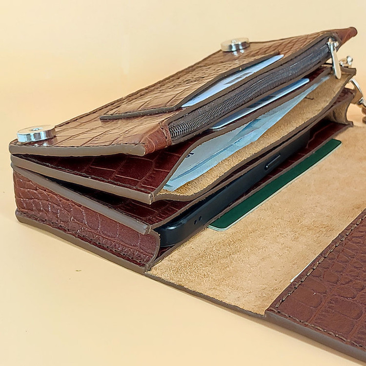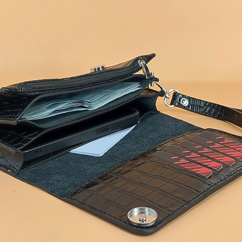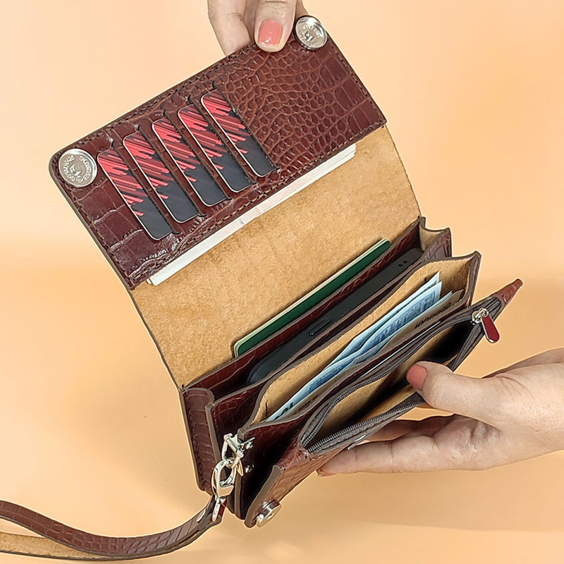 جیب داخلی , دارای یک محفظه اصلی , جیب سکه , جیب طولی اسکناس , جیب کارت اعتباری , جیب کارت ویزیت , محفظه نگهداری پاسپورت , محفظه نگهداری کلید