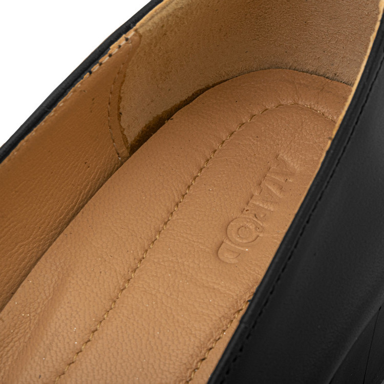 استفاده از چرم طبیعی گاوی در رویه و چرم طبیعی نرم بزی در آستر داخلی تنفس طبیعی پا به جهت تمام چرم طبیعی بودن بیرون و داخل کفش طراحی لوکس و ژورنالی با پاشنه ی 4 سانتیمتری برای رویدادهای خاص