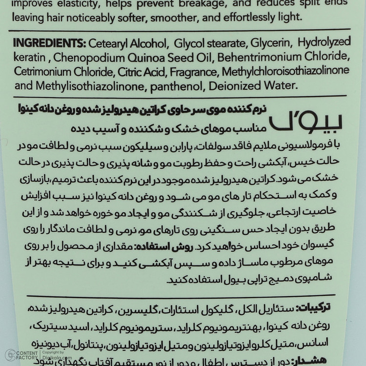 نرم‌کننده مو بیول مدل Damage Therapy مناسب برای موهای خشک و آسیب دیده حجم 300 میلی‌لیتر