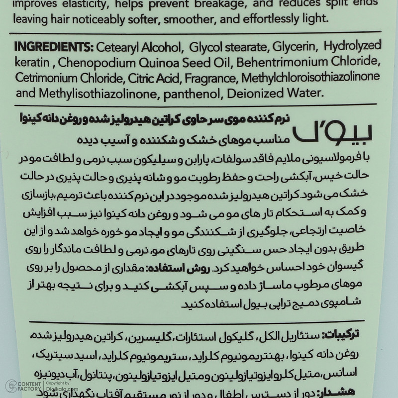 نرم‌کننده مو بیول مدل Damage Therapy مناسب برای موهای خشک و آسیب دیده حجم 300 میلی‌لیتر