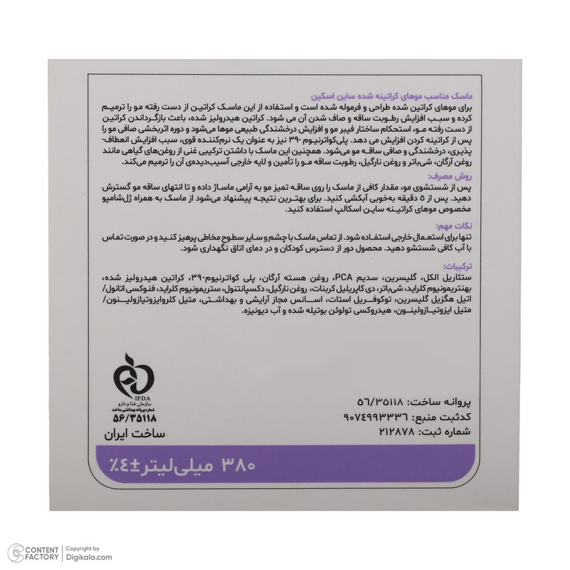مناسب موهای کراتینه شده افزایش زمان اثربخشی کراتینه مو ترمیم و بازسازی کراتین از دست رفته مو افزایش رطوبت ساقه مو و صاف شدن آن کمک به افزایش استحکام ساختار فیبر مو افزایش درخشندگی طبیعی موها نرمکننده قوی و افزایش انعطافپذیری مو