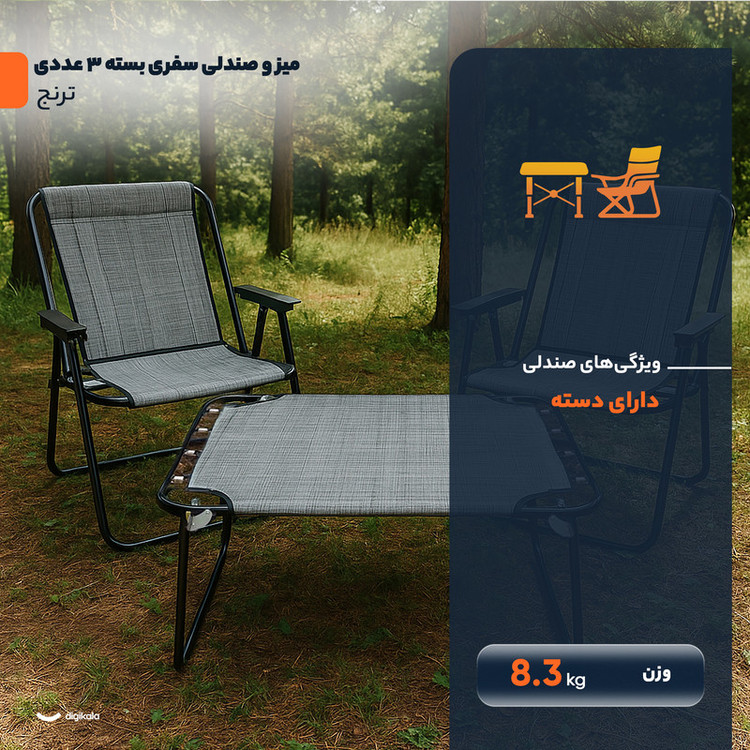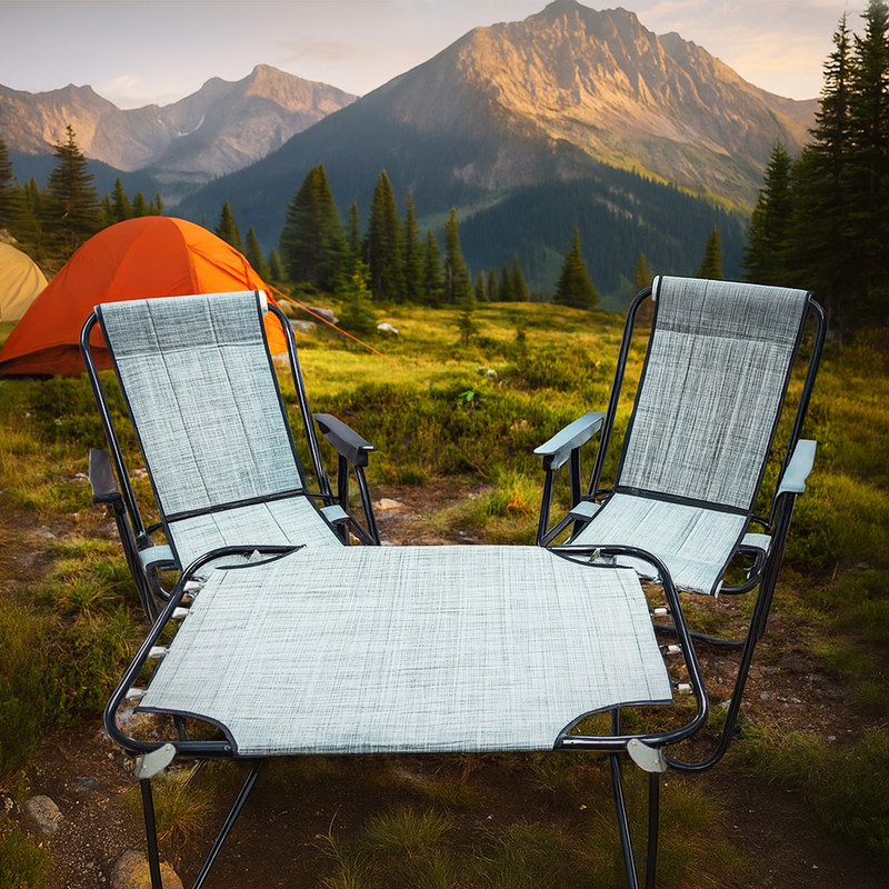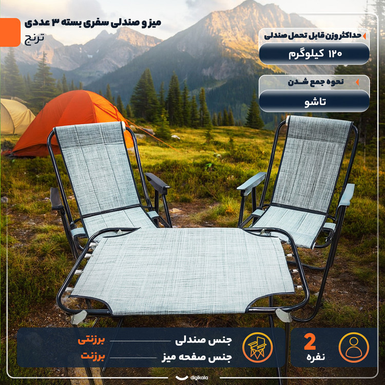 یک عدد میز صندلی تاشو به همراه دو عدد صندلی سفری تاشو مناسب سفر سبک و با پایه های ضد لغزش