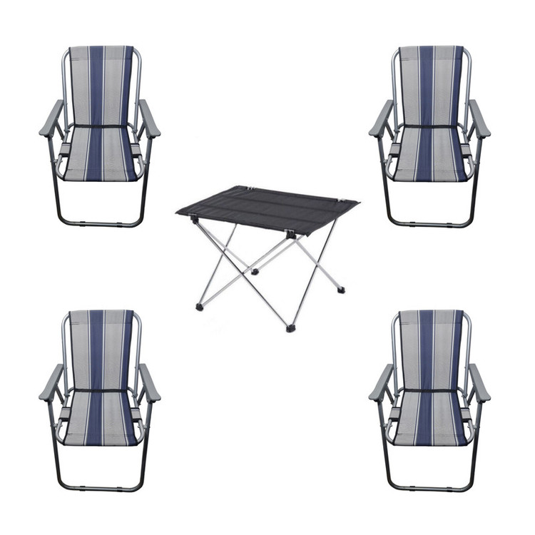 - متفاوت بودن رنگ ها فقط شامل رنگ میز می باشد - میز و صندلی سفری مدل A شامل یک میز در ابعاد 60 طول 50 عرض و ارتفاع از سطح زمین 50 می باشد - این پک شامل چهار عدد صندلی تاشو همراه کاور پارچه ای 8 فنره کف فوم و با قابلیت تحمل وزن 120 کیلوگرم می باشد