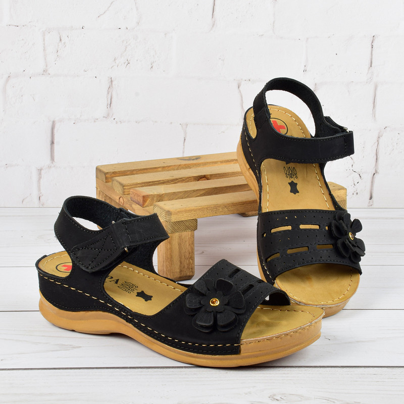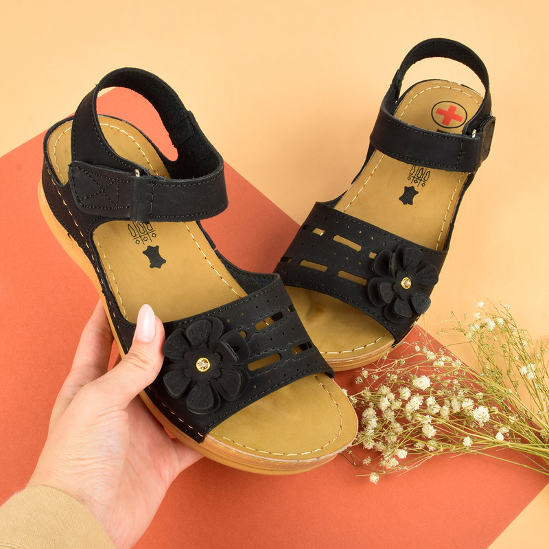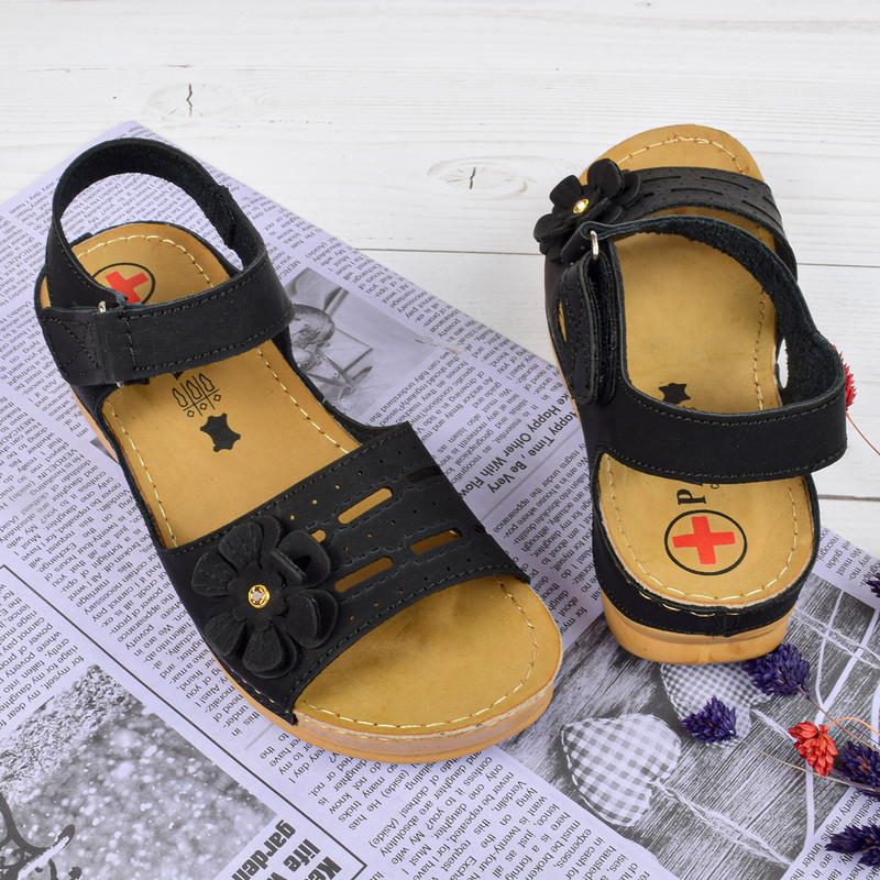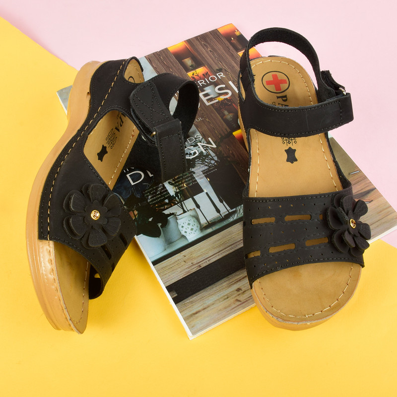 صندل زنانه پاپا مدل طبی گلدار برچسبی BK.4016