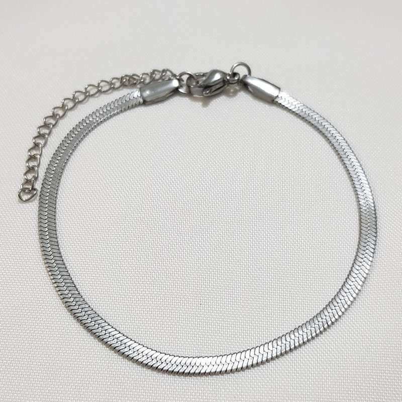 دستبند ماری سیلور از جنس استیل درجه یک است. رنگ ثابت و ضد حساسیت میباشد. طول آن 18.5 سانت به علاوه 5 سانت اضافه است که میتوان اندازه آن را تغییر داد. پهنای دستبند 0.3 میلی میباشد.