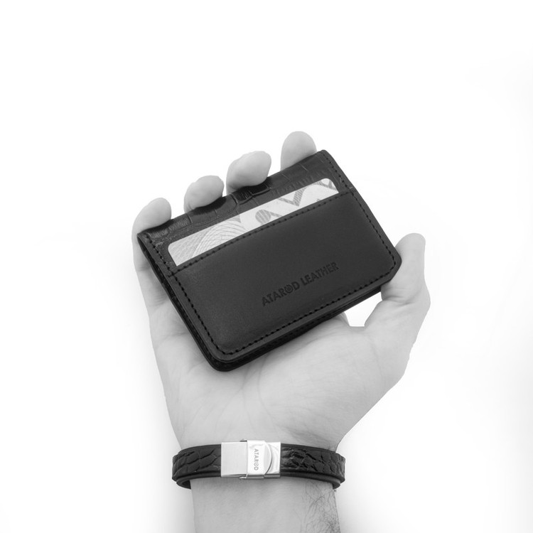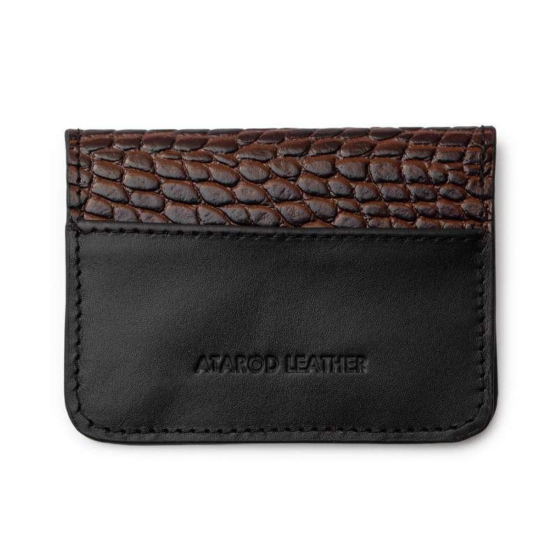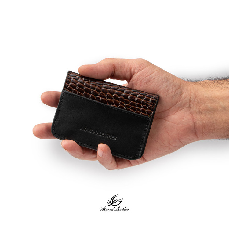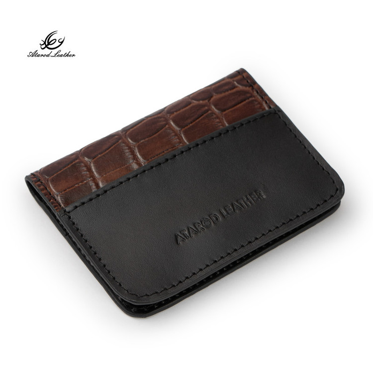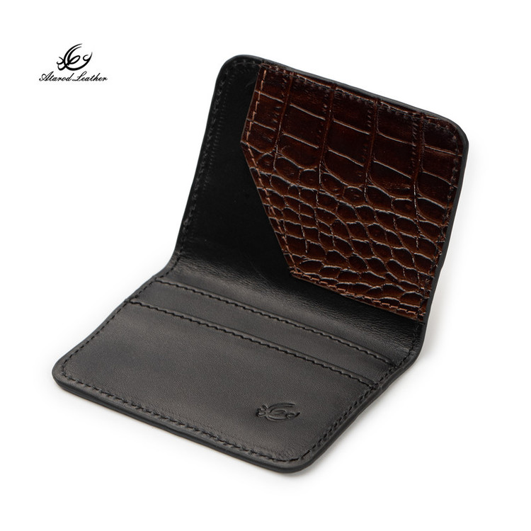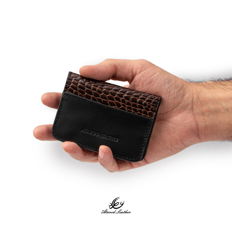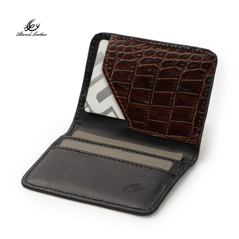 ترکیب چرم طبیعی گاوی لوکس ناپا و کروکو برند چرم عطارد 4 قسمت برای کارت بسته بندی اختصاصی چرم عطارد مناسب هدیه