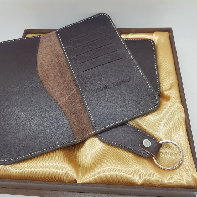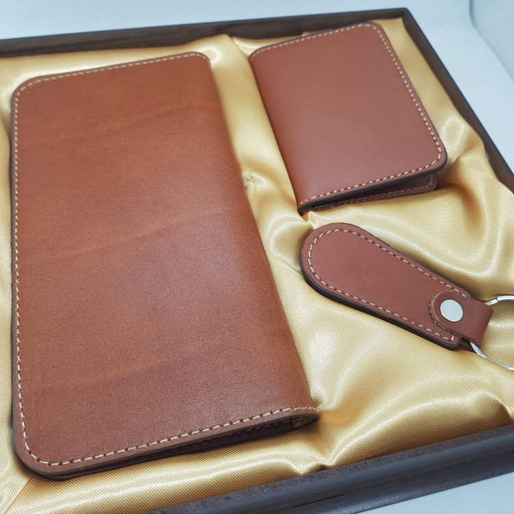 100درصد چرم طبیعی گاوی دوخت تمیز جعبه هدیه زیبای چوبی