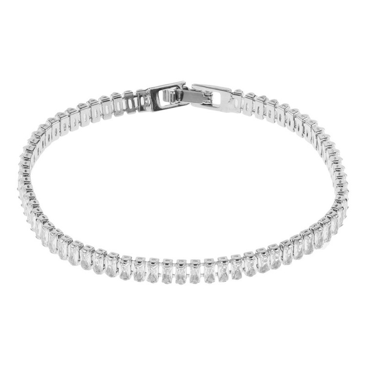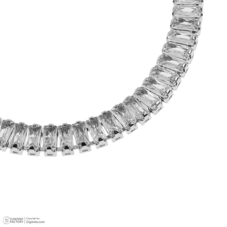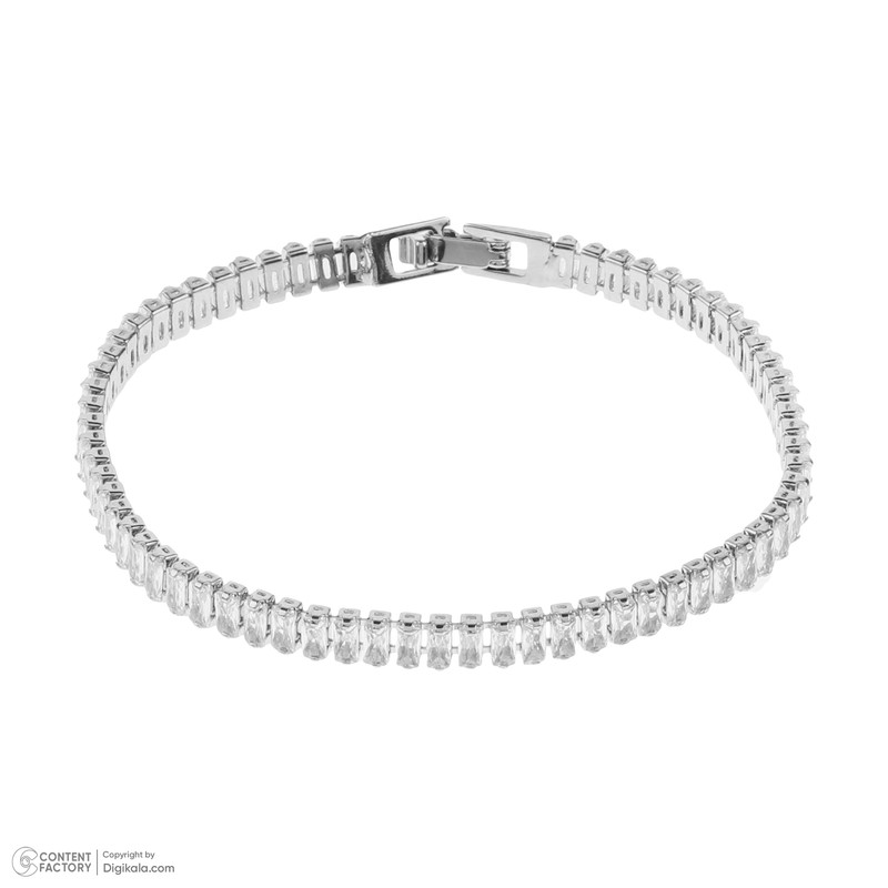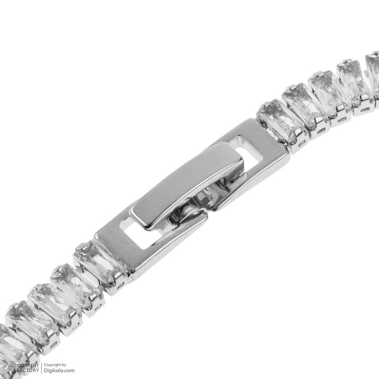 سایر توضیحات: این دستبند با نگینهای باگت ریز بسیار ظریف و پایهی کار استیل و 5 لایه آبکاری نقره شده، زیبایی و ظرافت را به شما هدیه میدهد. نگینهای این دستبند توسط استیل مهار شده و بسیار سخت از بدنه دستبند جدا میشوند. همپنین این دستبند ضدحساسیت است و رنگ پس نمیدهد.