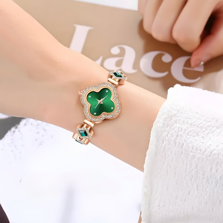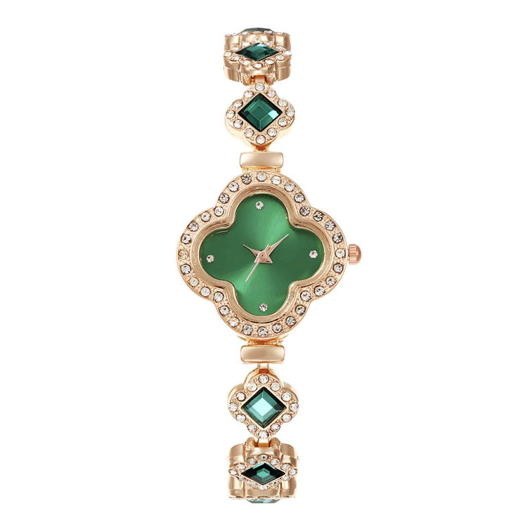 ساعت مچی عقربه ای زنانه مدل دور نگین طرح زمردی