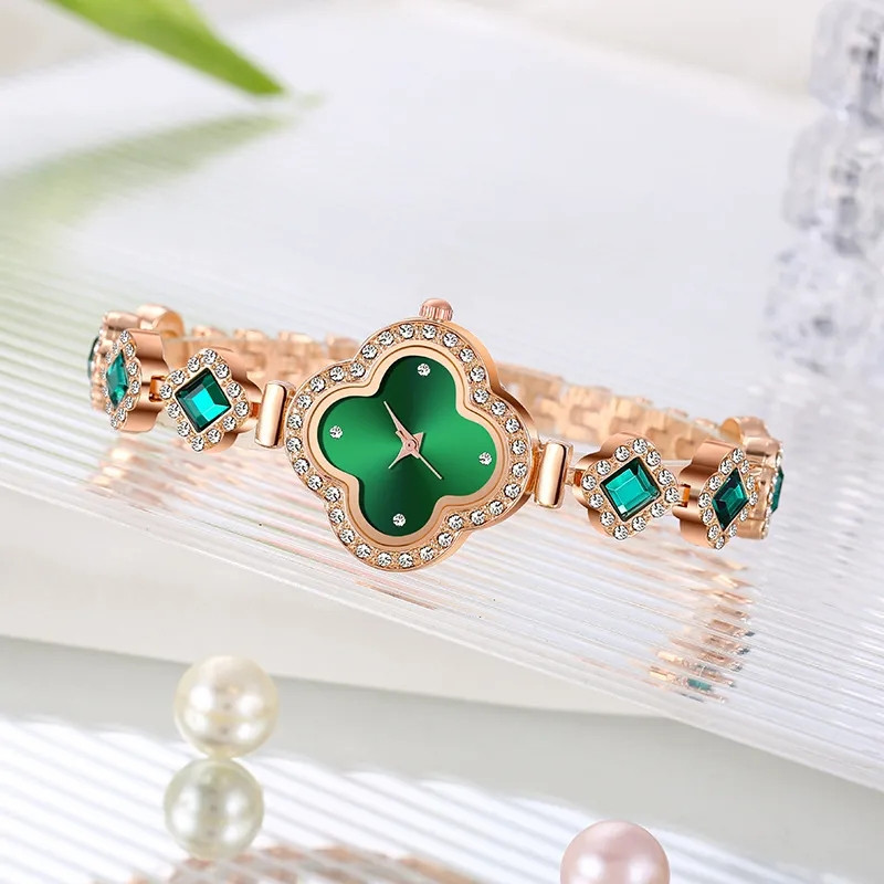 ساعت مچی عقربه ای زنانه مدل دور نگین طرح زمردی