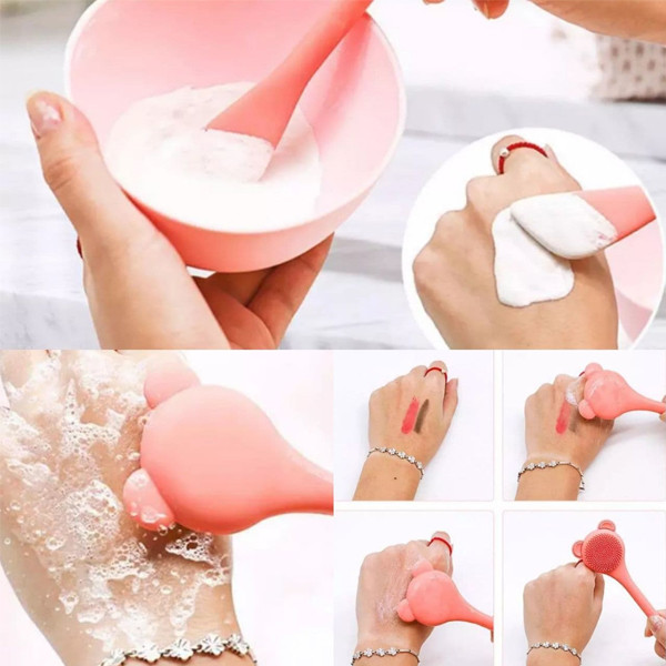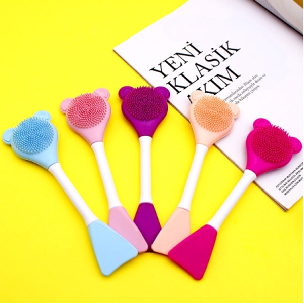 براش ماسک زنی و فیس براش طرح خرسی دارای هر دو سر سلیکونی و دسته پلاستیکی میباشد که یک سر آن مناسب برای ماسک زدن روی پوست و سر دیگر آن جهت شستشو و ماساژ کاربرد دارد. هر دو سر براحتی قابل شستشو هستند و دارای رنگهای سرخابی، بنفش، گلبهی ، صورتی و آبی میباشند.