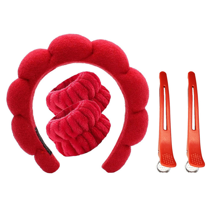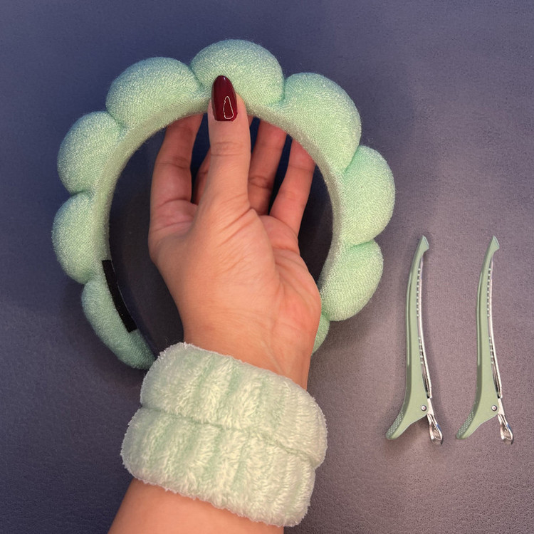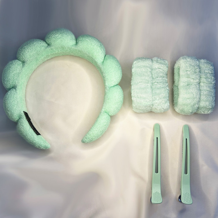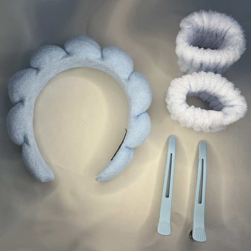 هدبند آرایشی مدل بیوتی به همراه مچ بند و گیره نگهدارنده مو بسته ۵ عددی