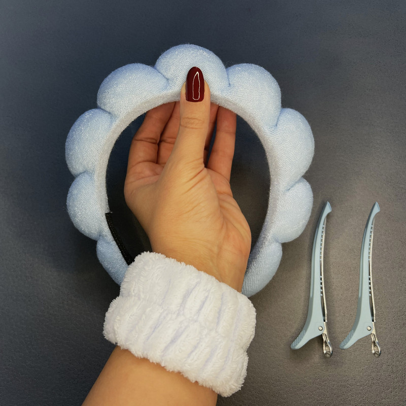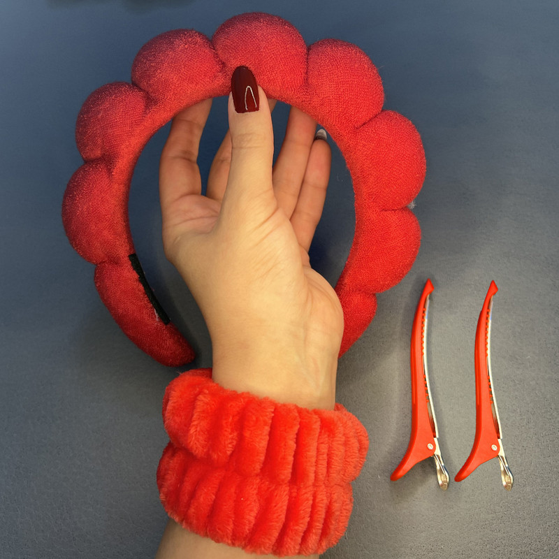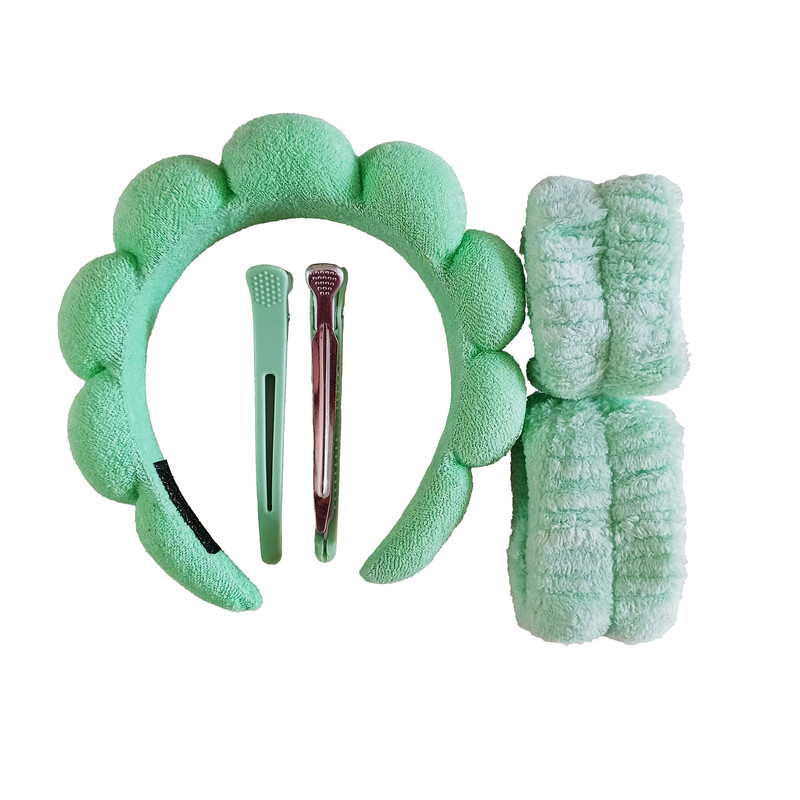 هدبند آرایشی مدل بیوتی به همراه مچ بند و گیره نگهدارنده مو بسته ۵ عددی
