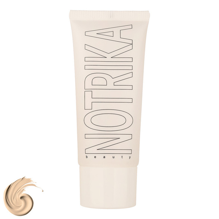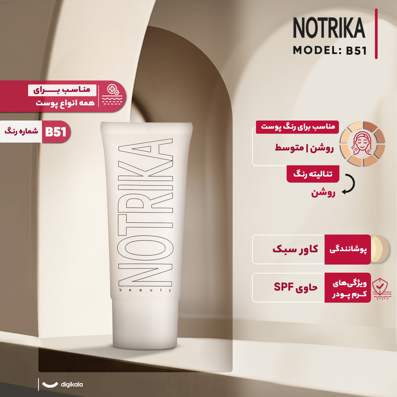 با کمک براش، بیوتیبلندر یا انگشتان خود، مقداری کرم پودر روی صورت پخش کنید.