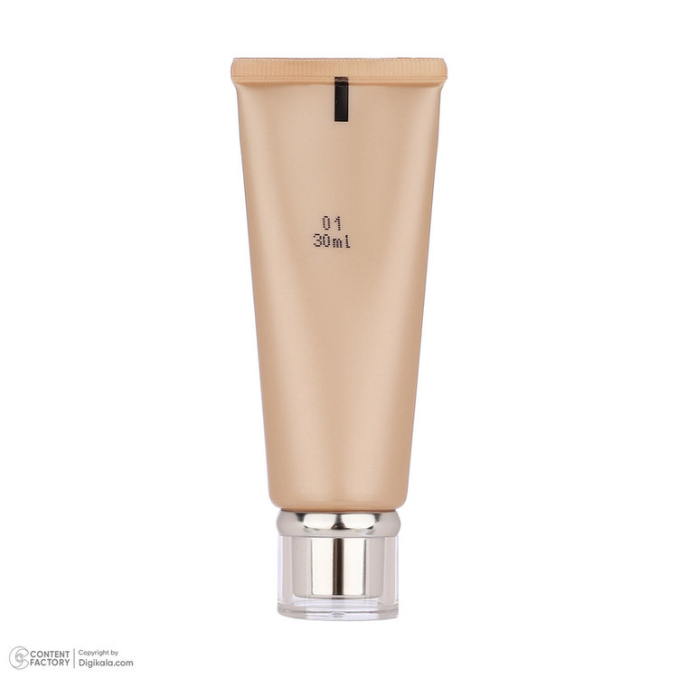 مقداری کرم پودر را با کمک براش، بیوتیبلندر یا انگشتان خود، روی صورت پخش کنید.