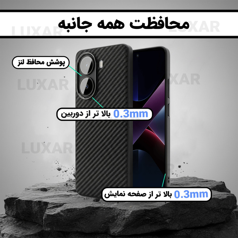 ضد اثر انگشت - قالب گيرى كاملا مناسب - طراحى سبک و منعطف - استاندارد نظامى سقوط از ارتفاع 3 متر - پوشش محافظ لنز - 0.3mm بالا تر از دوربين - 0.3mm بالا تر از صفحه نمايش