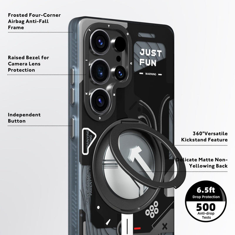 لبه های برجسته برای محافظت صفحه نمایش , لبه های برجسته برای محافظت دوربین , مقاوم در برابر خط و خش , پشتیبانی از شارژ بیسیم , قابلیت تبدیل شدن به استند
