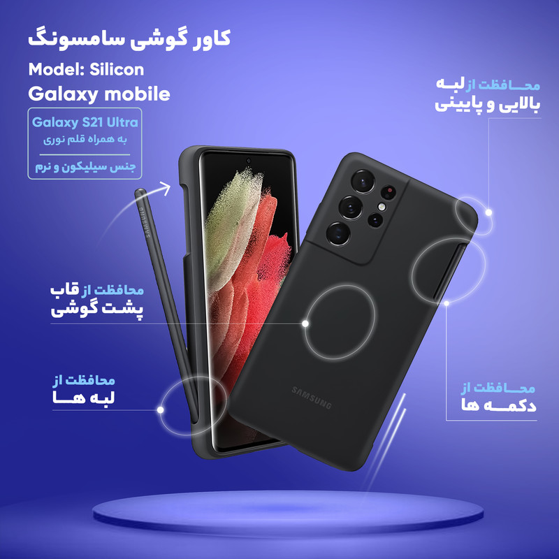 کاور سامسونگ مدل Silicon مناسب برای گوشی موبایل سامسونگ Galaxy S21 Ultra به همراه قلم نوری
