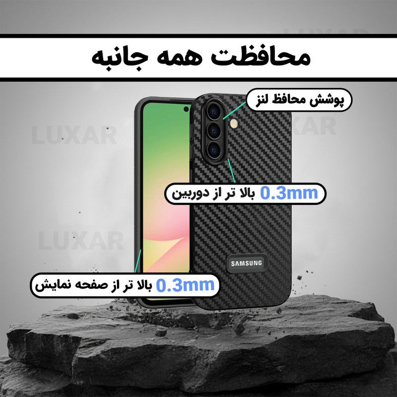 ضد اثر انگشت - قالب گيرى كاملا مناسب - طراحى سبک و منعطف - استاندارد نظامى سقوط از ارتفاع 3 متر - پوشش محافظ لنز - 0.3mm بالا تر از دوربين - 0.3mm بالا تر از صفحه نمايش