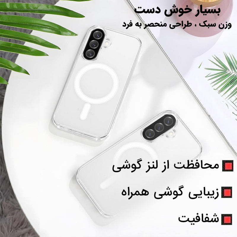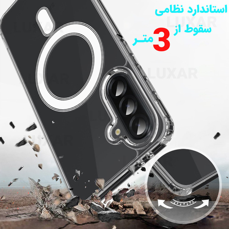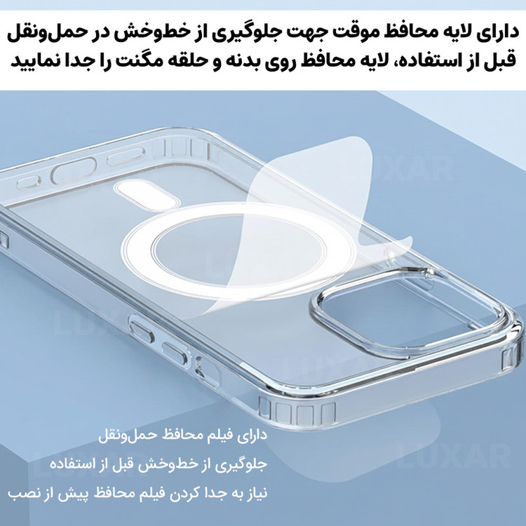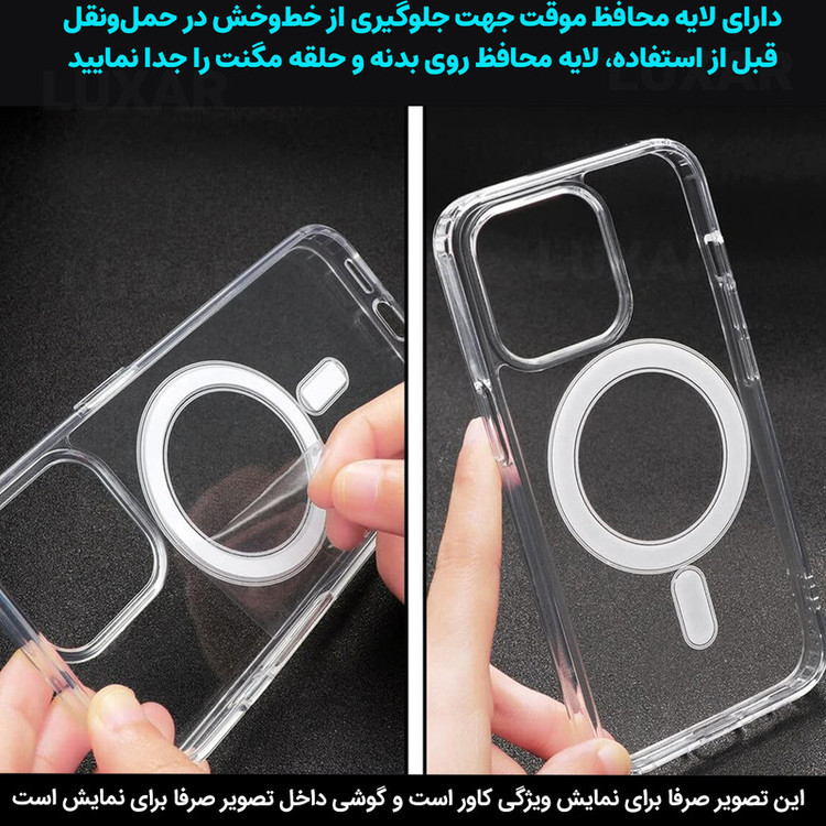 استاندارد نظامی سقوط از ارتفاع ۳ متر - عدم تغییر رنگ - محافظت از لنز گوشی- متریال شفاف با دوام بالا - بدون تغییر رنگ - پشتیبانی از MagSafe برش های دقیق