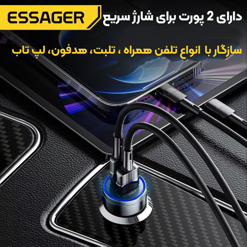 شارژر فندکی 66 وات اساگر مدل مولتی پورت