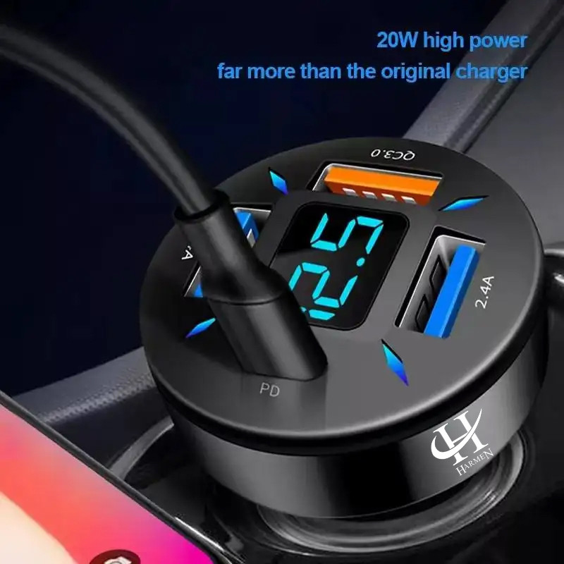 شارژر فندکی هارمن مدل PD4QC3 یکی از قدرتمندترین و با کیفیت ترین شارژرهای فندکی پر فروش میباشد این شارژر دارای 4 پورت خروجی که پورت آن USB PD برای کابل گوشی های موبایل جدید که سر آن لایتنینگ و سر دیگر آن تایپ سی بوده مانند گوشی های موبایل اپل ایفون 14 پرو و 14 پرومکس و 13 پرومکس و غیره و یا گوشی های موبایل سامسونگ که هر دوسر آن تایپ سی TYPE-C یا به اصطلاح USB-C میباشد مانند S23 ULTRA و NOTE 20 ULTRA و S21FE و غیره پورت دیگر آن QC3 میباشد که برای گوشی های با شارژ سریع (فست شارژ) مناسب میباشد که بهتر از جهت استفاده از قابلیت فست شارژ کابل موبایل نیز بایستی قابلیت فست داشته باشد جهت بدنه این شارژر فندکی از پلاستیک خشک ABS میباشدکه کیفیت ساخت آن از شارژرهای فندکی برند الدینیو و باسئوس و انکر وریمکس و یسیدو و جوی روم با کیفیت تر میباشد دو پورت دیگر آن با شدت جریان خروجی تا 2.4 آمپر میباشد که هوشمند بوده و به میزان نیاز موبایل از خود خروجی مناسب ارسال میکند این شارژر دارای یک فیوز مناسب جهت جلوگیری از ولتاژ بیش از حد بوده و مانع از آسیب به موبایل شما میشود همچنین دارای یک مدار هوشمند جهت جلوگیری از نوسانات ولتاژ در خودروهای بی کیفیت و یا خودروهایی که مشکل برق دارند میشود شارژر فندکی هارمن تنها شارژر فندکی میباشد که هم برای خودرو سواری هم کامیون و هم اتوبوس از 12 ولت تا 24 ولت کاربرد دارد شارژر فندکی هارمن مدل PD4QC3 دارای یک نمایشگر جهت نمایش ولتاژ خروجی شارژر میباشد