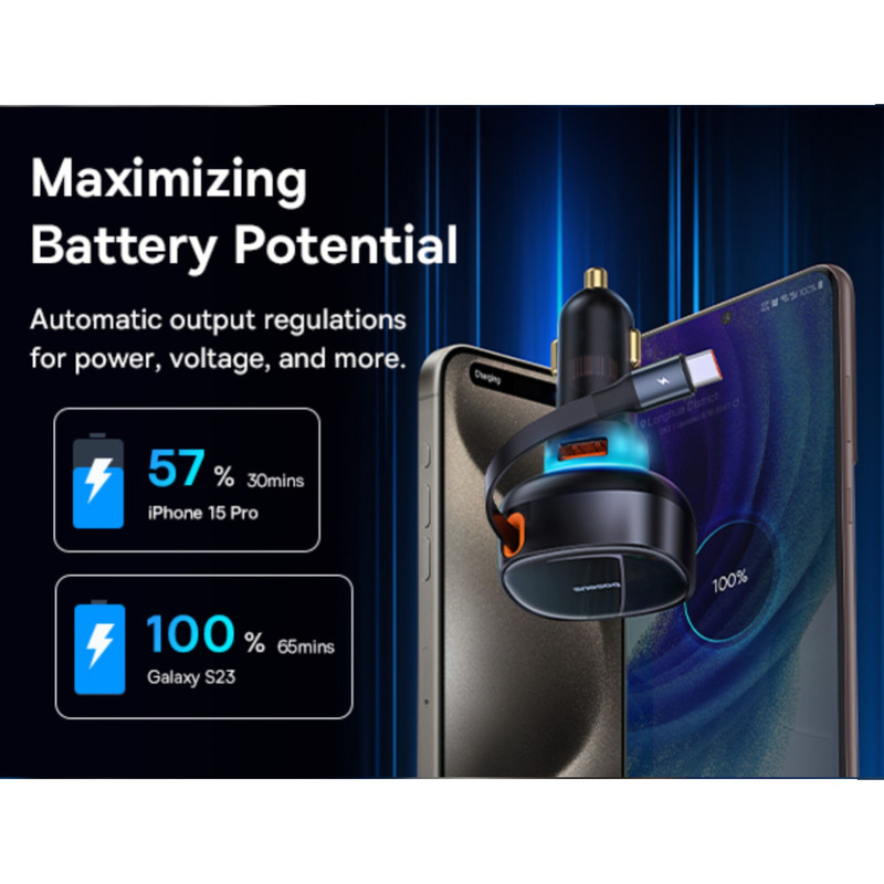 استفاده از شارژر فندکی میتواند باعث قابلیت شارژ سریع و آسان دستگاههای الکترونیکی شما در حین مسافرت با خودرو باشد و در نتیجه از زمان و انرژی شما صرفهجویی کند. کمپانی بیسوس که یکی از بهترین شرکتها در زمینه تولید انواع شارژر و ... میباشد. جدیدا یکی از کارآمدترین محصول خود با نام شارژر فندکی Enjoyment Pro Retractable USB-C Car Charger 60W را روانه بازار کرده است. این محصول با داشتن یک کابل تایپسی متصل به بدنه و یک درگاه USB امکان شارژ همزمان دو دستگاه را برایتان فراهم میکند.