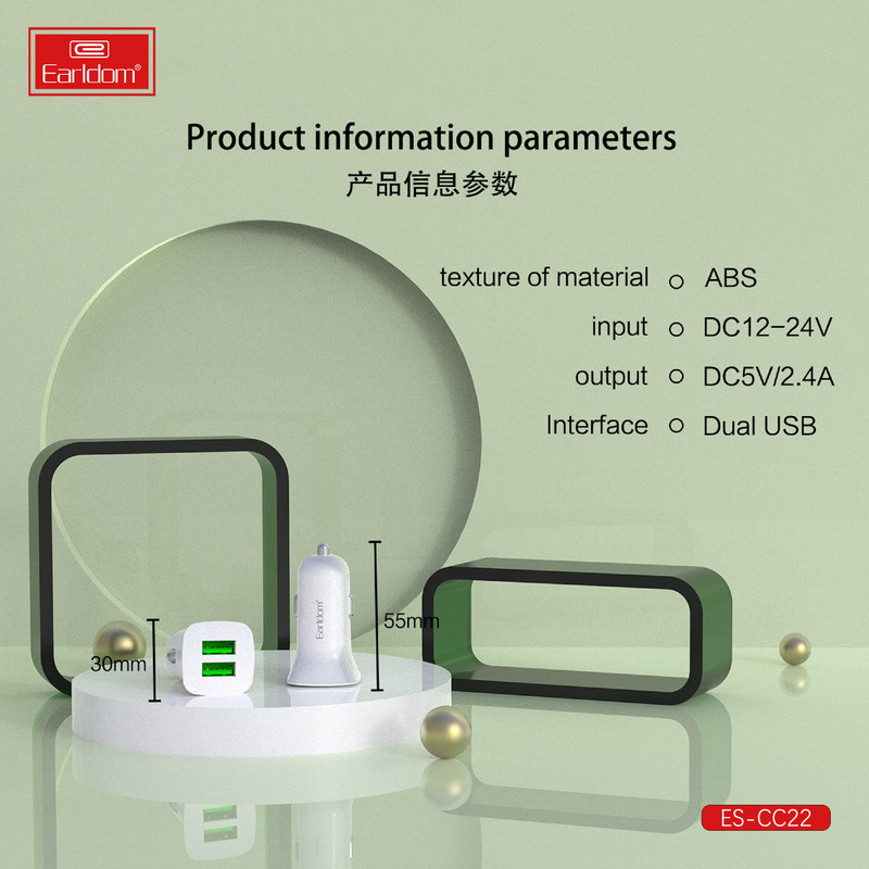 استفاده روز افزون از لوازم دیجیتال باعث شده است نیاز همیشگی به شارژ این دستگاه ها وجود داشته باشد برای افراد در سفر استفاده از یک شارژر فندکی ماشین کمک بسیار بزرگی در بر طرف کردن این نیاز است. شرکت EARLDOM یکی از شرکت های تولید کننده لوازم جانبی گوشی های تلفن همراه به صورت گسترده است. شارژر خودرو EARLDOM ES-CC22 با دارا بودن 2 خروجی 2.0 USB همراه با پشتیبانی از قابلیت شارژ سریع، استفاده از ABS مقاوم در برابر حرارت در ساخت بدنه ازجمله محصولات این شرکت است که در رده محصولات اقتصادی قرار می گیرد.