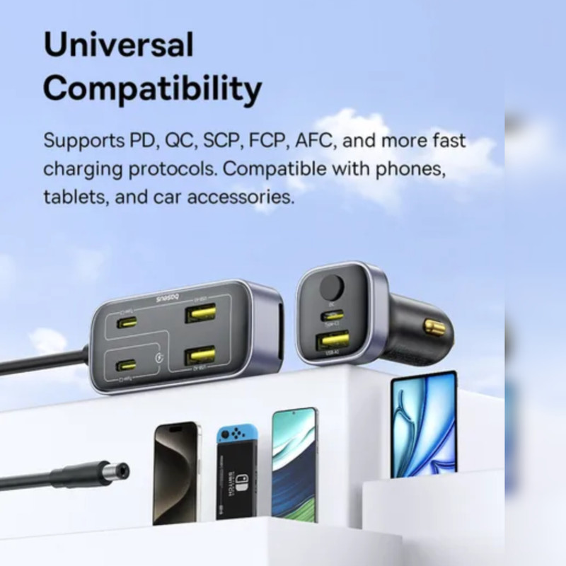 * کابل افزایش طول 1.5 متری: همراه این محصول یک کابل افزایش طول 1.5 متری عرضه شده است که به سرنشینان عقب خودرو امکان میدهد به راحتی دستگاههای خود را شارژ کنند.