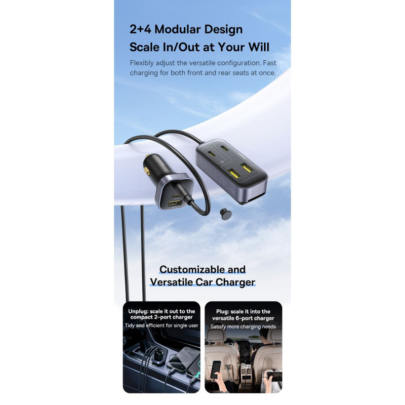 شارژر فندکی L1 مخصوص ماشین طراحی شده است و با ظرفیتی تا ۱۱۰ وات، سه پورت USB-A و سه پورت USB-C را ارائه میدهد و به کاربران این امکان را میدهد که همزمان چندین دستگاه مانند تلفن، تبلت و لپتاپ را شارژ کنند. این محصول از شارژ سریع برای دستگاههایی با استاندارد PD 3.0 پشتیبانی میکند و به کاهش زمان شارژ کمک میکند. این شارژر فندکی با طراحی مناسب، نصب و استفاده آسان، انتخابی ایدهآل برای سفرهای طولانی است و برق کافی برای تمام دستگاههای تلفن همراه شما را تضمین میکند.