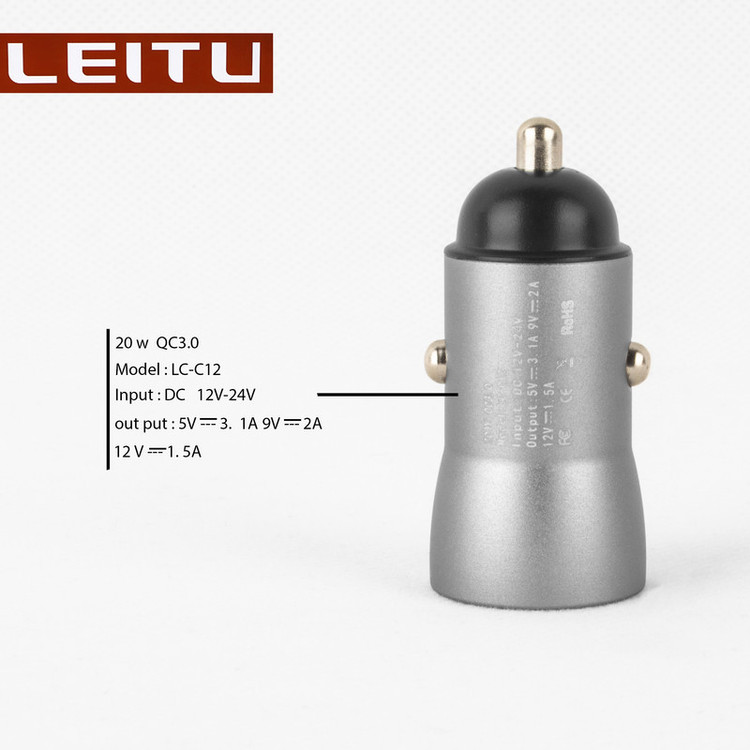 شارژر فندکی مدل LC-C12 یک شارژر با کیفیت که توسط شرکت LEITU ساخته شده است. شارژرهای فندکی یک راه رایج برای جلوگیری از تمام شدن شارژ باتری گجتهای هوشمند شما در طول روز و ساعاتی که به پریز برق دسترسی ندارید، محسوب میشوند. شما با استفاده از یک شارژر فندکی میتوانید باتری گوشیهای موبایل، دوربین دیجیتال، موزیک پلیر و دیگر دستگاههای از این قبیل خود را داخل خودرو، بدون نیاز به استفاده از پریز برق، شارژ کنید. شرکت لیتو این شارژر را با وزنی معادل 20 گرم طراحی کرده است. روی سطح این شارژر یک درگاه خروجی USB تعبیه شده که شدتجریان خروجی در آن مطابق 9V=2A , 12V=1.5A, 5V=3.1Aآمپر است. این شارژر میتواند ابزار دیجیتالی شما را به صورت سریع شارژکنند. این محصول با توجه به مجهز بودن به استانداردهای QC میتواند انواع گوشیهای موبایل و تبلت را هم بهراحتی شارژ کند. ولتاژ ورودی در این محصول 12 تا 24 ولت است. توان خروجی کلی این دستگاه 20 وات میباشد. پس برای استفاده از آن کافی است شارژر را بهطور مستقیم به درگاه فندک داخل خودرو متصل کنید.به همراه این محصول یک کابل تبدیل لایتنینگ هم ارائه شده است که طول آن برابر با 1 متر است.