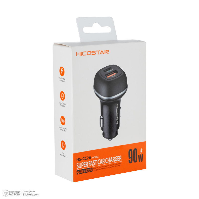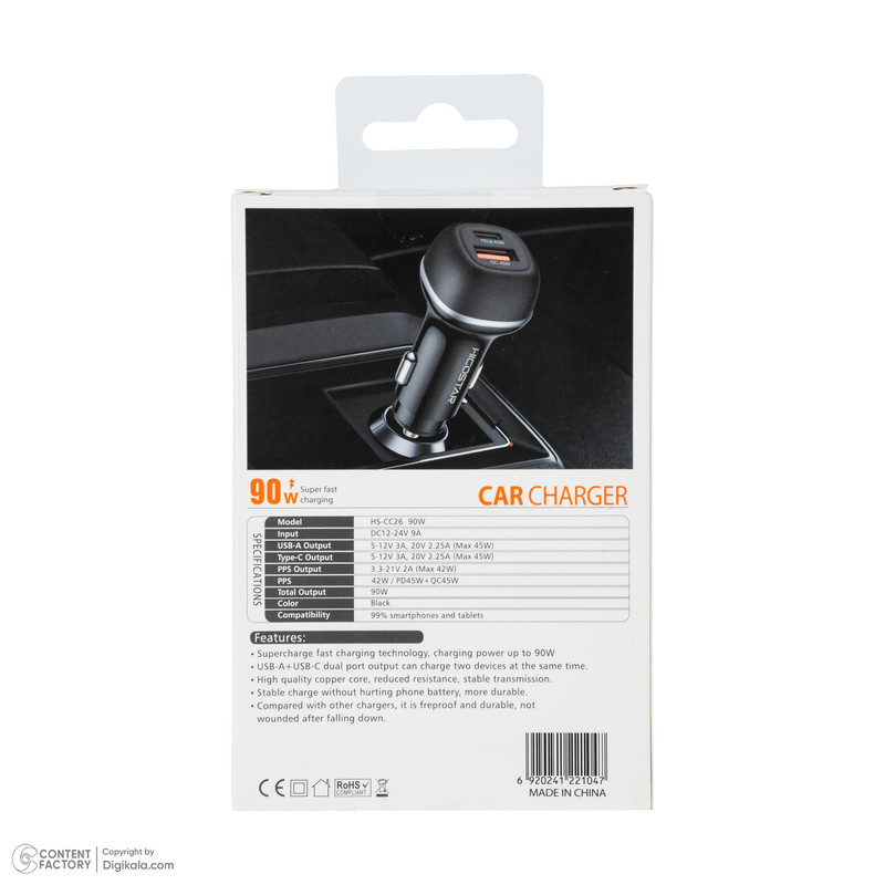 شارژر فندکی 90 وات دو پورت هایکواستار مدل HS-CC26