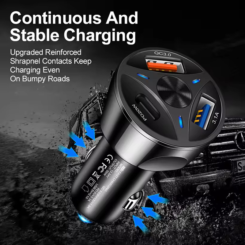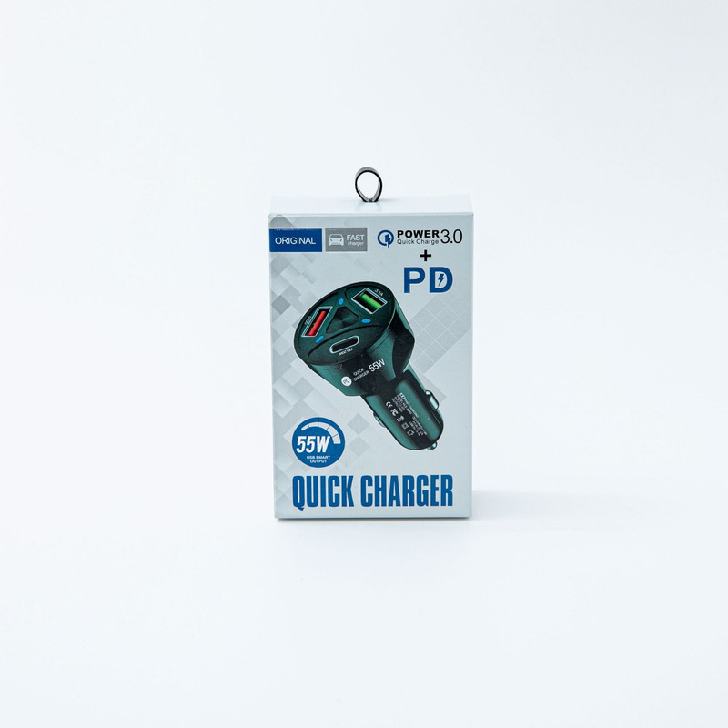 شارژر فندکی 55 وات سه پورت مدل MLE-003 به همراه کابل USB-C