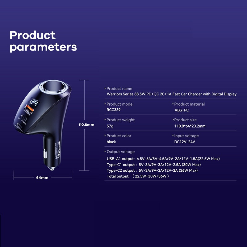 شارژر فندکی 88.5 وات ریمکس مدل RC-339
