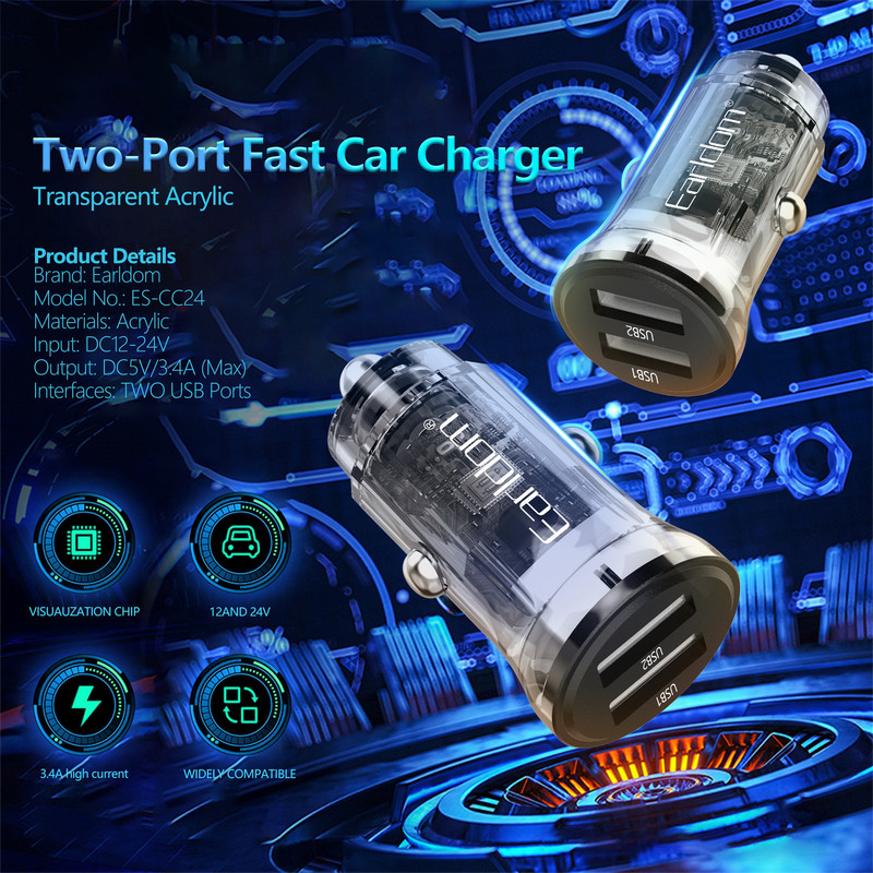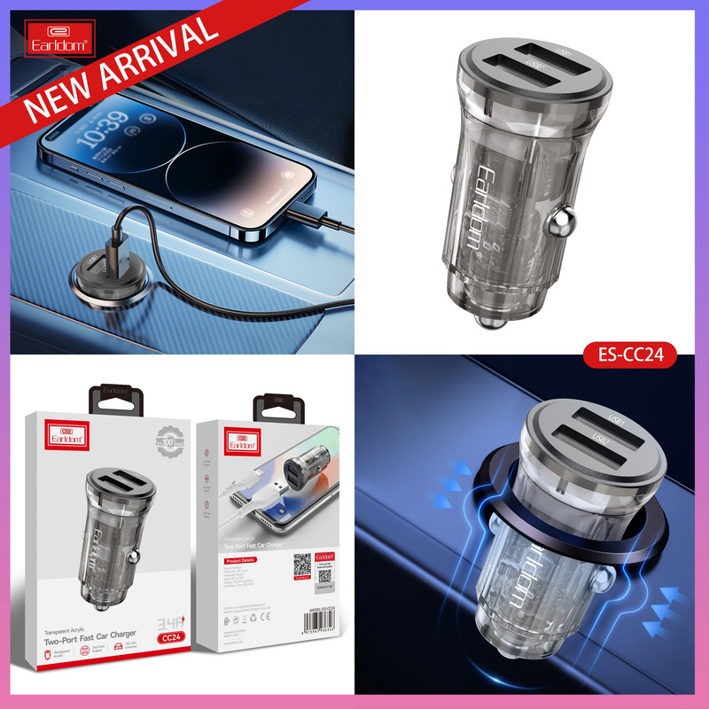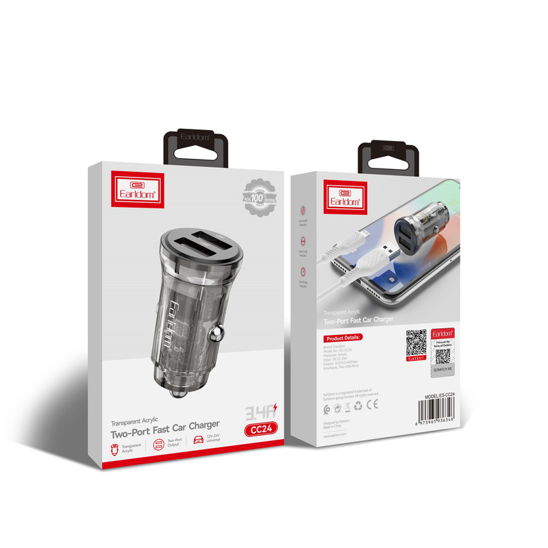 شارژر CC24 با خروجی 5V و 3.4 آمپر سرعت شارژ بالاتری نسبت به دیگر شارژرهای فندکی دارد. این شارژر USB دوگانه، راه حل ایده آلی برای شارژ iPad یا تبلت شما و بسیاری از دستگاه های USB دیگر شما مانند تلفن های (هوشمند)، پخش کننده های MP3 و دوربین های دیجیتال از طریق فندک ماشین است. به لطف قدرت خروجی بالا و 2 پورت USB، می توانید همزمان 2 دستگاه USB را شارژ کنید. شارژر دوگانه USB خودرو با ولتاژ 12 تا 24 ولت کار می کند و آنها را به طور خودکار به 5 ولتی که دستگاه های USB استفاده می کنند تبدیل می کند. هنگام سفر با ماشین، بدون نیاز به رایانه، نوت بوک یا پریز دیواری، می توانید دستگاه های USB خود را به راحتی شارژ کنید. جنس بدنه این شارژر از آلیاژ آلومینیوم می باشد.