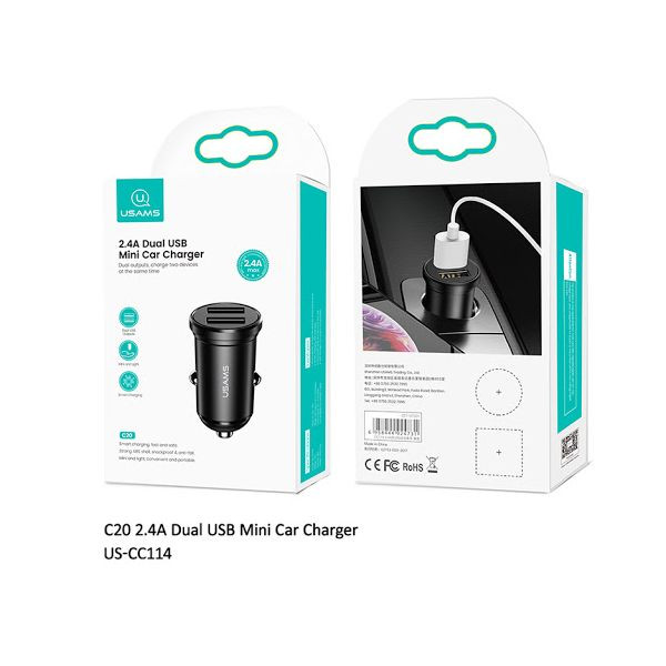 امروزه شارژر فندکی درون خودروها تبدیل به یک نیاز شده است، شما با استفاده از یک شارژر فندکی میتوانید باتری گوشیهای موبایل، موزیک پلیر و دیگر دستگاههایی از این قبیل را در داخل خودرو، بدون نیاز به استفاده از پریز برق، شارژ کنید. «شارژر فندکی یوسمز» (USAMS C20) دارای دودرگاه خروجی USB است، که قابلیت اتصال و استفاده همزمان دودستگاه را دارد. این محصول قابلیت شارژ سریع را دارد. شدت جریان خروجی این شارژر 2.4 امپرو ولتاژ ورودی آن، 12 تا 24 ولت است.