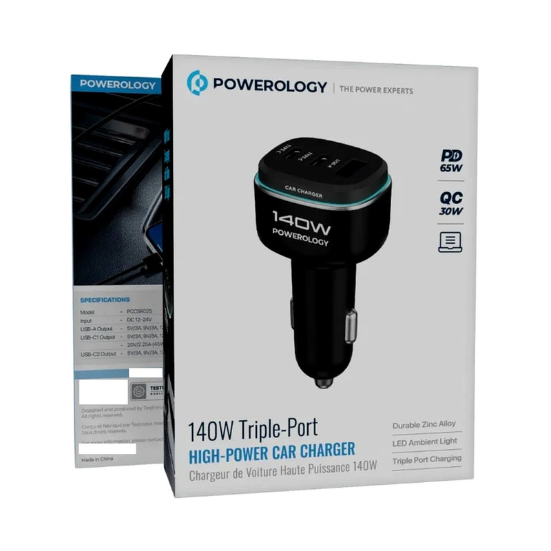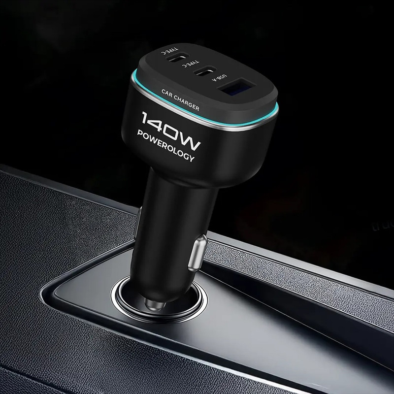 شارژر فندکی 140 وات 3 پورت پاورولوجی مدل PCCSR025BKGY