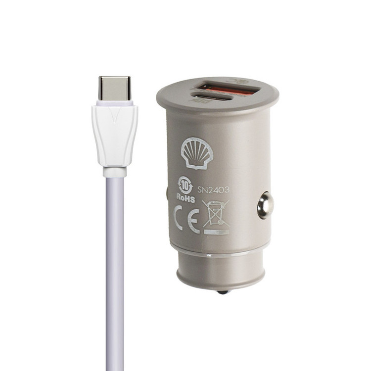 شارژر فندکی 30 وات دو پورت شل مدل CCT006CC به همراه کابل USB-C