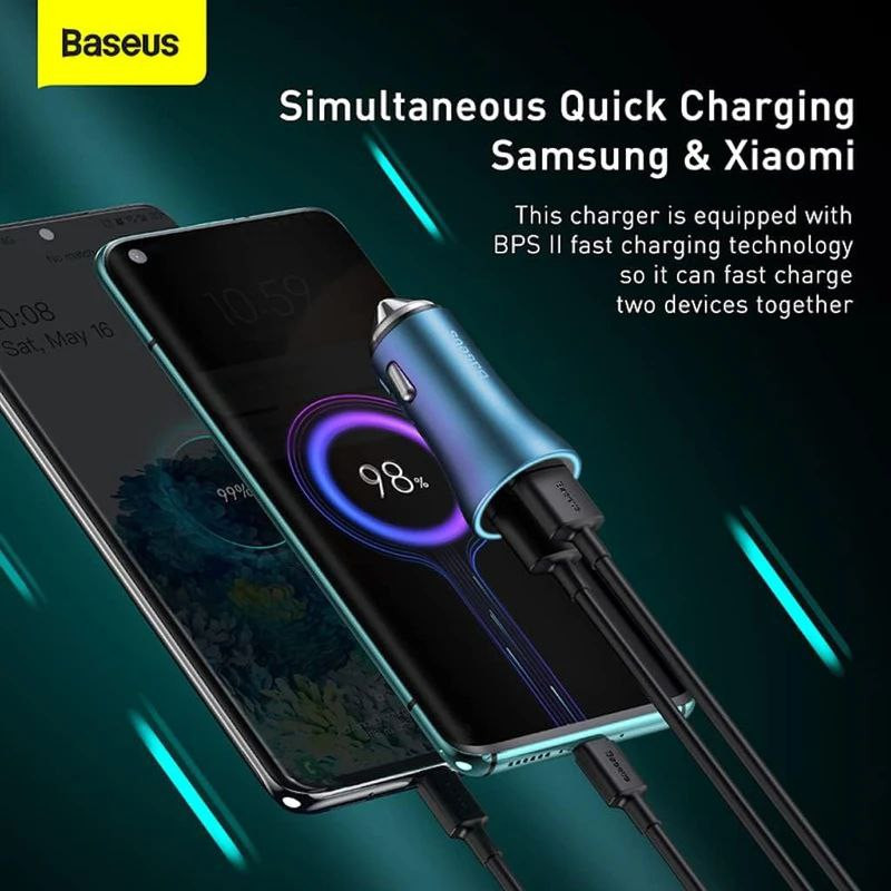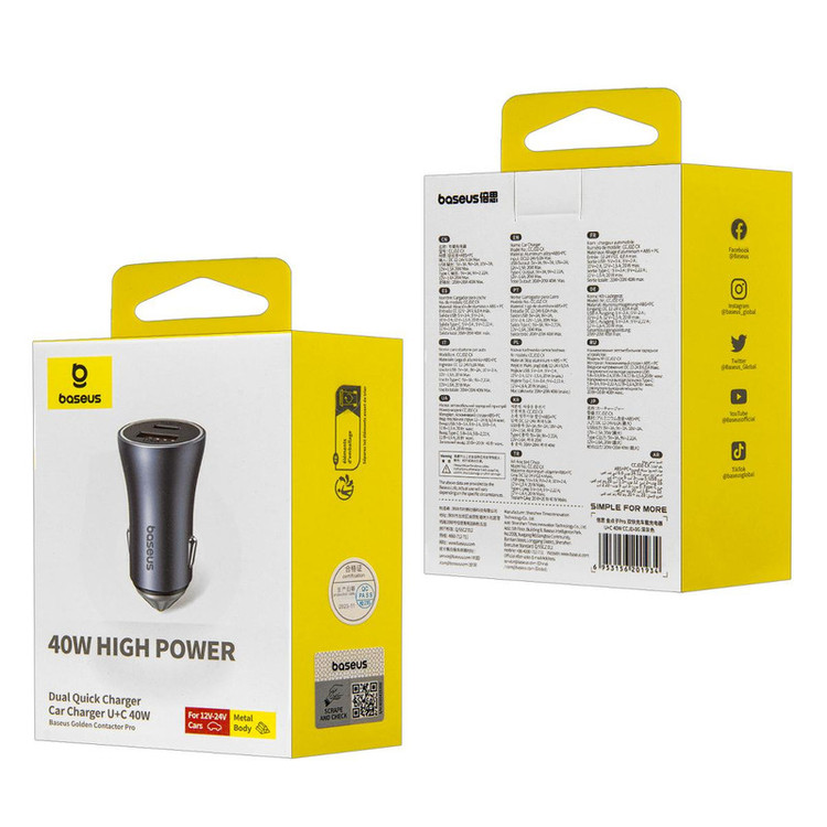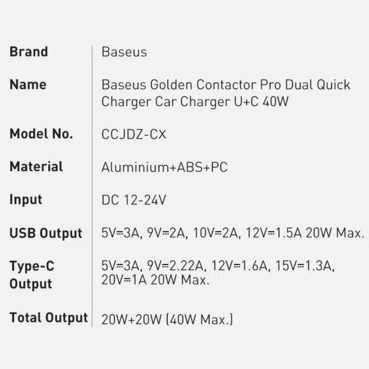 شارژر فندکی Golden Contactor Pro CCJDZ-CX محصولی از کمپانی Baseus بوده که به شما این امکان را می دهد تا بتوانید به راحتی دو گوشی موبایل را همزمان و با سرعت بالا شارژ کنید.بدنه این شارژر فندکی از ترکیب آلیاژ آلومینیوم ، پلاستیک ABS و پلاستیک پلی کربنات (PC) ساخته شده و مات و پولیش کاری شده است. ابعاد آن کوچک و تنها 55x26.5 میلی متر است و وزن آن 26 گرم میباشد. دو خروجی USB و Type-C که روی CCJDZ-CX تعبیه شده است، هر دو دارای خروجی 20W هستند. در صورت استفاده از دو پورت به صورت همزمان توان خروجی آنها کاهش نخواهد یافت. بنابراین مجموع توان خروجی این شارژر فندکی 40 وات است. این توان به وسیله برق خودرو که عموماً بازه ای میان 12 تا 24 ولت دارد تامین می شود. همانطور که گفتیم توان حداکثر این شارژ ماشین فست شارژ 40 وات است، اما همه گوشیها نمیتوانند این توان را تحمل کنند و تنها گوشیهایی که از QC پشتیبانی کنند امکان بهرهمند شدن از شارژ سریع را خواهند داشت. برای جلوگیری از ورود جریان بیش از حد به گوشیهایی که تحمل توان بالا را ندارندپروتکلهای محافظتی دراین شارژر به کار بسته شده تا از ورود جریان و توان بالا و اتصال کوتاه جلوگیری شود.محافظ تغییر ولتاژ، گرما و تنظیم شدت جریانمعمولاً در خودرو در سرعت ها و شرایط مختلف شاهد تغییر ولتاژ هستیم. مثلاً با رفتن روی دست انداز ممکن است در جریان اختلاف به وجود آید. این تغییرات ولتاژ یعنی قطع و وصلی اگر به صورت مستمر و پی در پی صورت گیرد ممکن است باعث مشکل و آسیب رسیدن به تلفن شما شود. در این صورت وجود این محافظ در داخل فندکی بیسوس به کمک شما خواهد آمد.