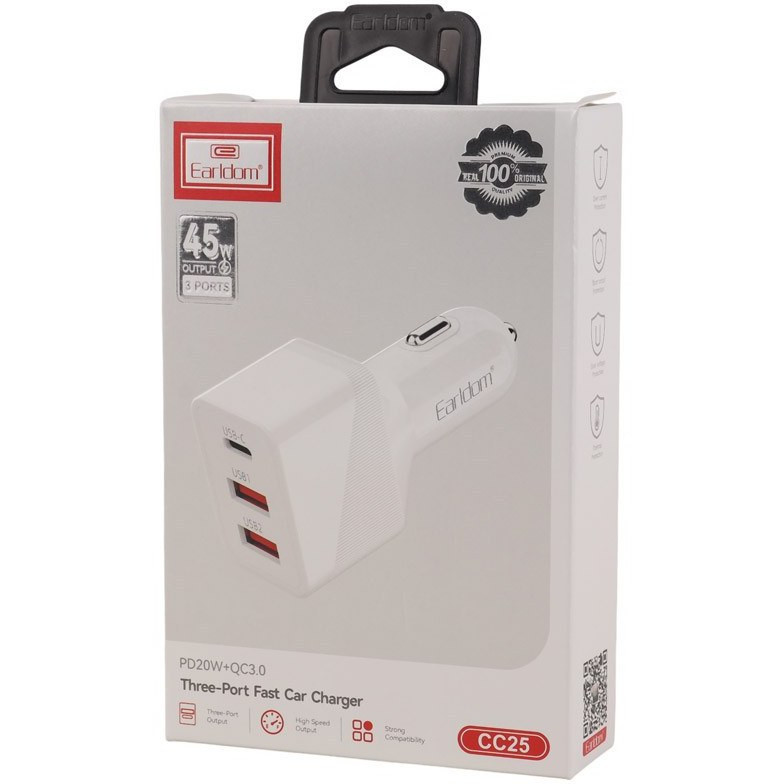 شارژر فندکی 45 وات 3 پورت ارلدام مدل cc25