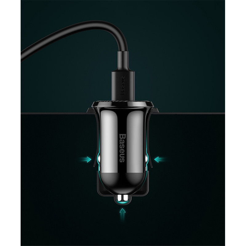 ابعاد شارژر Baseus CCALLP_01 برابر با 46.8×26.5،26.5 میلی متر بوده و جای زیادی نمیگیرد. در واقع زمانی که این شارژر را در پورت فندکی ماشین قرار میدهید تنها 41 میلی متر از بدنه آن بیرون میماند. بدنه این شارژر فندکی از ترکیب پلاستیک ABS و پلاستیک پلی کربنات (PC) ساخته شده وبه خوبی پولیش کاری شده است. با وجود اندازه کوچک باسئوس دو پورت USB روی آن کار گذاشته که اجازه میدهد دو نفر هم زمان گوشیهای خود را شارژ کنند.