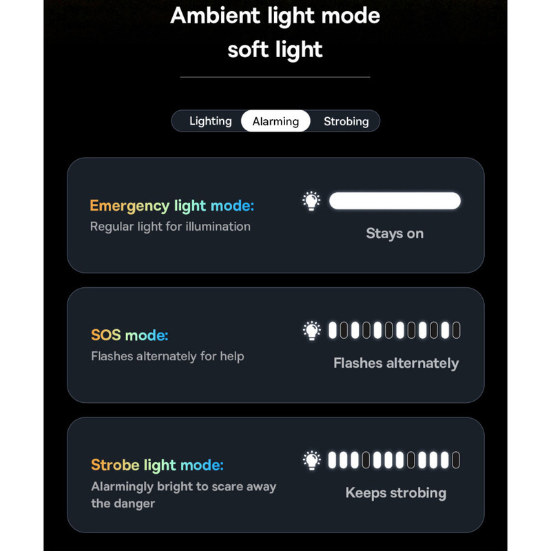چراغ قوه LED: چراغ قوه دارای سه حالت است: ثابت، SOS و چشمک زن، که آن را برای موقعیت های مختلف، مانند موارد اضطراری یا کار در شرایط کم نور، مفید می کند.