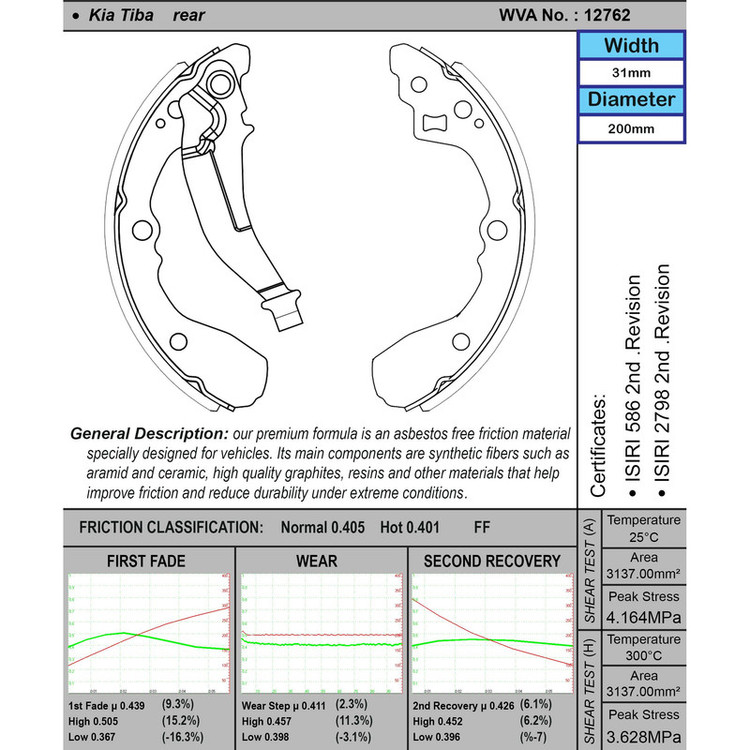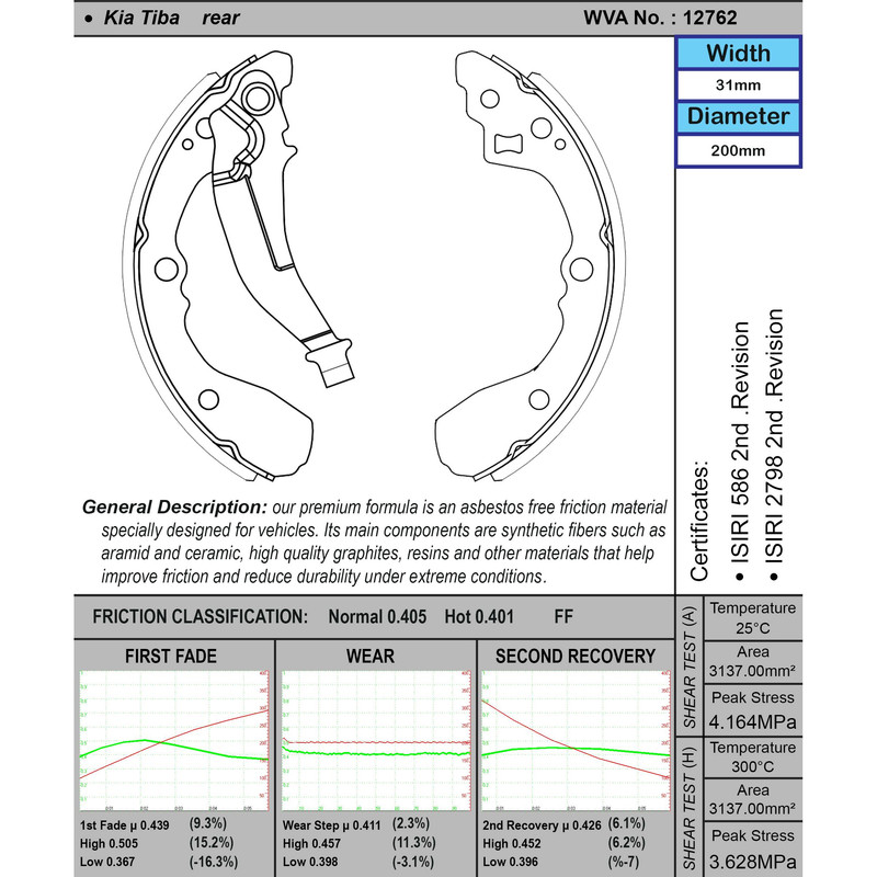 محل قرارگیری: دو جفت , لنت ترمز کاسهای (کفشکی) , مناسب برای چرخ عقب