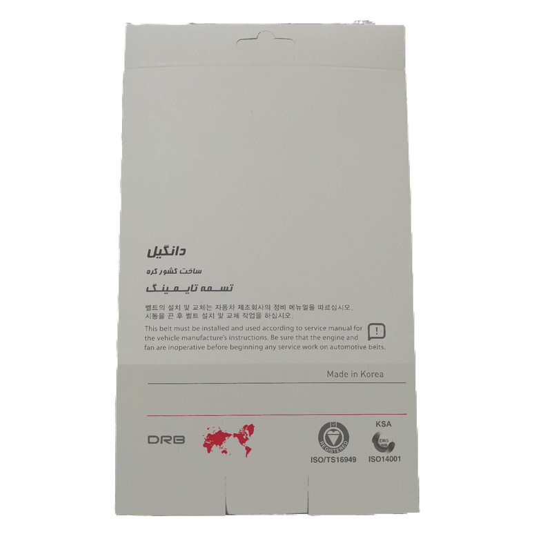 تسمه تایمینگ که ممکن است بارها شنیده باشید یک تسمه یلاستیکی است که قسمتی از موتور احتراق داخلی خودرو است و در داخل پیشرانه قرار دارد و میل لنگ خودرو را به میل سوپاپ یا سوپاپ ها متصل می کند. این تسمه وظیفه تنظیم زمان صحیح باز و بسته شدن سوپاپ ها را بر عهده دارد، آن ها را به چرخش درآورده و کنترل می کند. زمانبندی موتورها در ابتدا توسط زنجیر انجام میشد که باعث میگردید موتور ماشین با سر و صدا و اصطلاحاً سنگین کار کند. به همین دلیل و همچنین به علت سادگی استفاده، هزینه کمتر، عدم نیاز به روغن کاری و راندمان بالاتر، به تدریج زنجیر جای خود را به تسمه داد. تسمه تایم دانگیل ساخت کره دارای 107 دندانه می باشد که مناسب برای انواع مدل تیبا است که به طور معمول هر 60/000 کیلومتر توصیه به تعویض آن می شود.