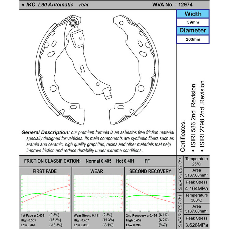 محل قرارگیری: دو جفت , لنت ترمز کاسهای (کفشکی) , مناسب برای چرخ عقب