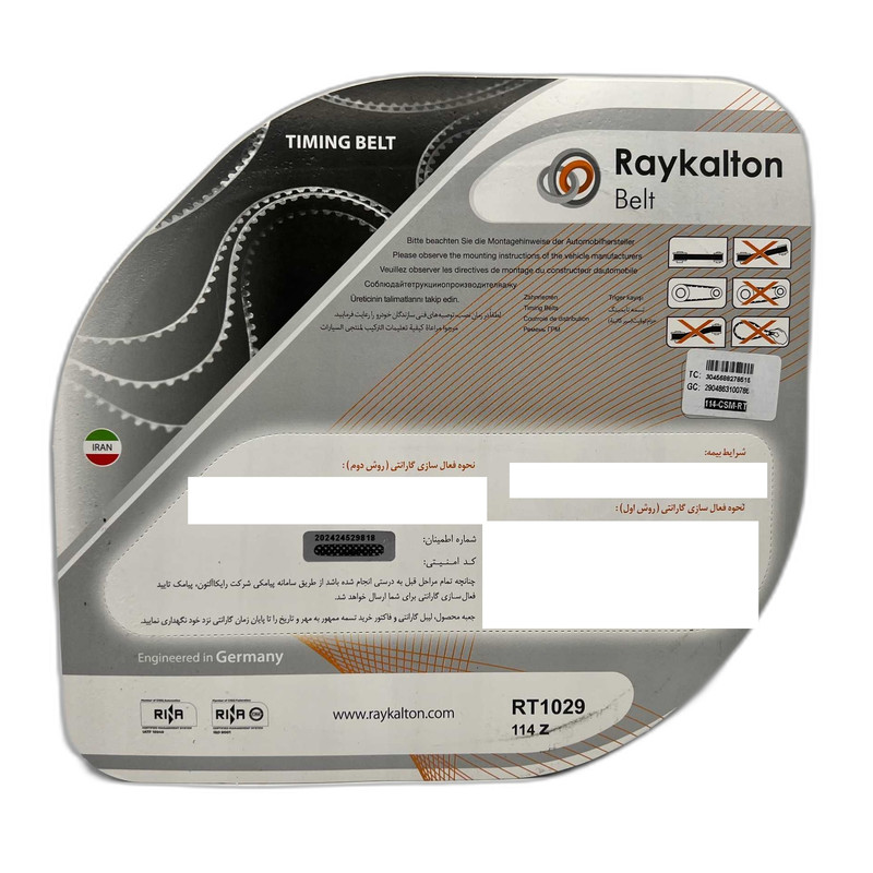 تسمه تایم 114 دندانه مناسب تمام خودرو های دارای موتور XU7 است ،تسمه رایکالتون از جنس CSM