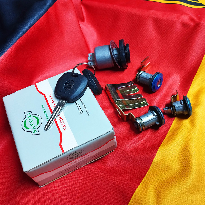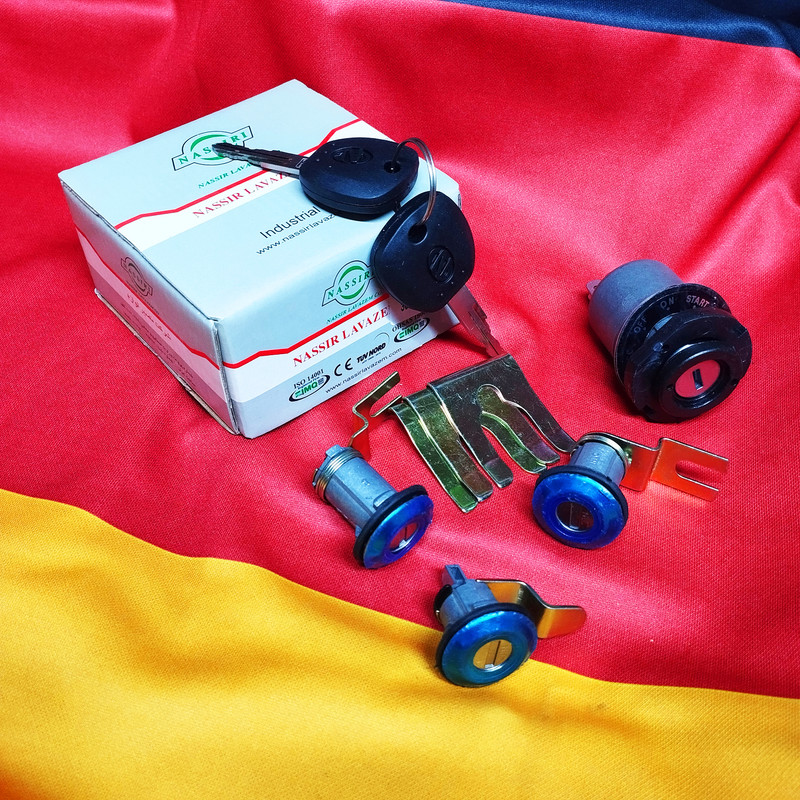این مجموعه شامل دو عدد قفل درب های جانبی و یک قفل درب باک و یک سوئیچ استارت است که همه با یک کلید ست هستند و دو عدد کلید نیز در بسته بندی موجود است