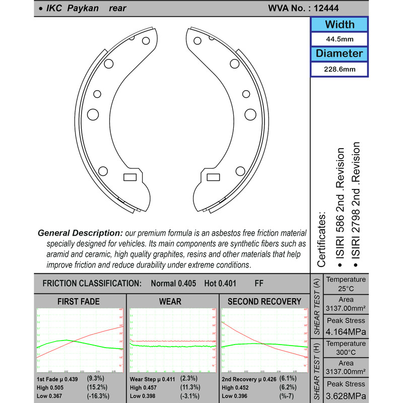 محل قرارگیری: لنت ترمز کاسهای (کفشکی) , مناسب برای چرخ عقب , دو جفت